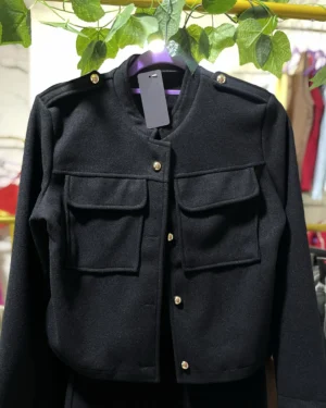Blazer forrado con bolsillo funcional, confeccionado en material tipo Noches de Viena. Set versátil y elegante, ideal para looks formales o casuales.