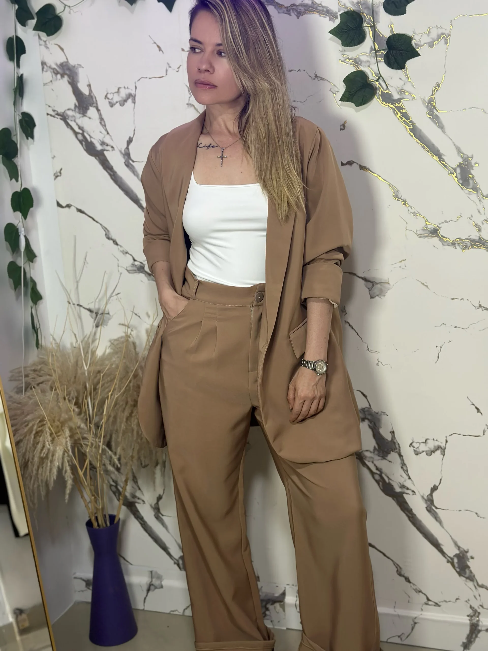 Conjunto con blazer oversize y pantalón amplio. Elegante, cómodo y versátil.