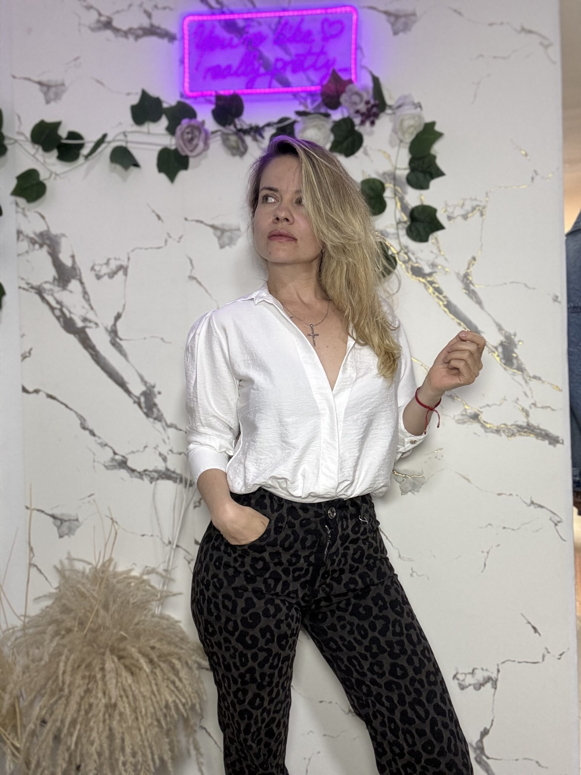 Body Cruzado con cuello tipo camisa, parte superior rígida y cintura con elástico que estiliza la figura.
