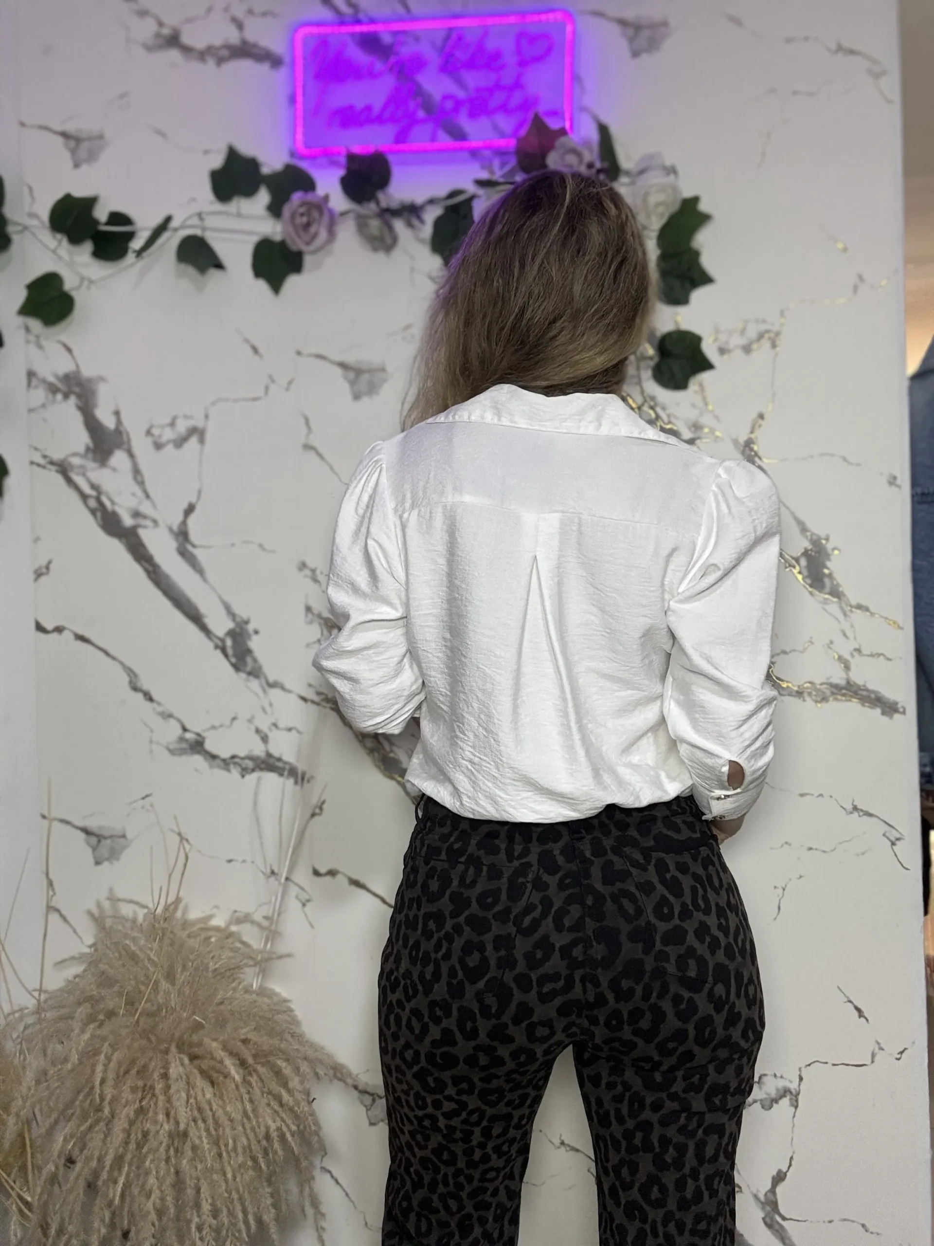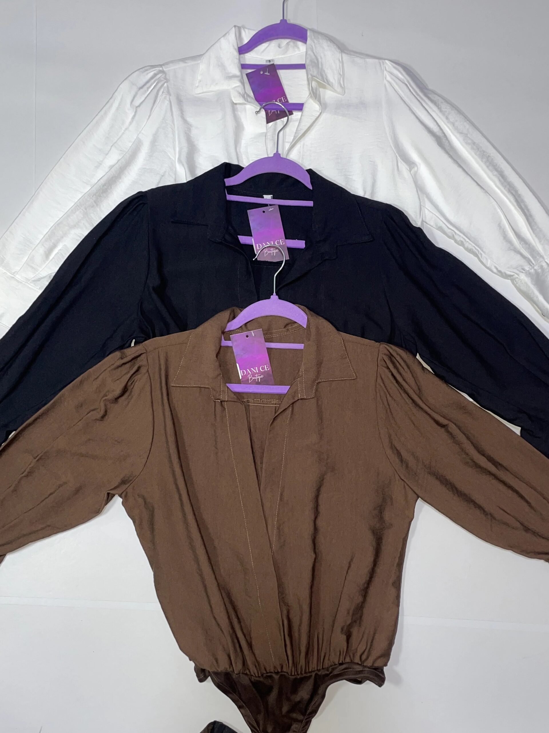 Body Cruzado con cuello tipo camisa, parte superior rígida y cintura con elástico que estiliza la figura.