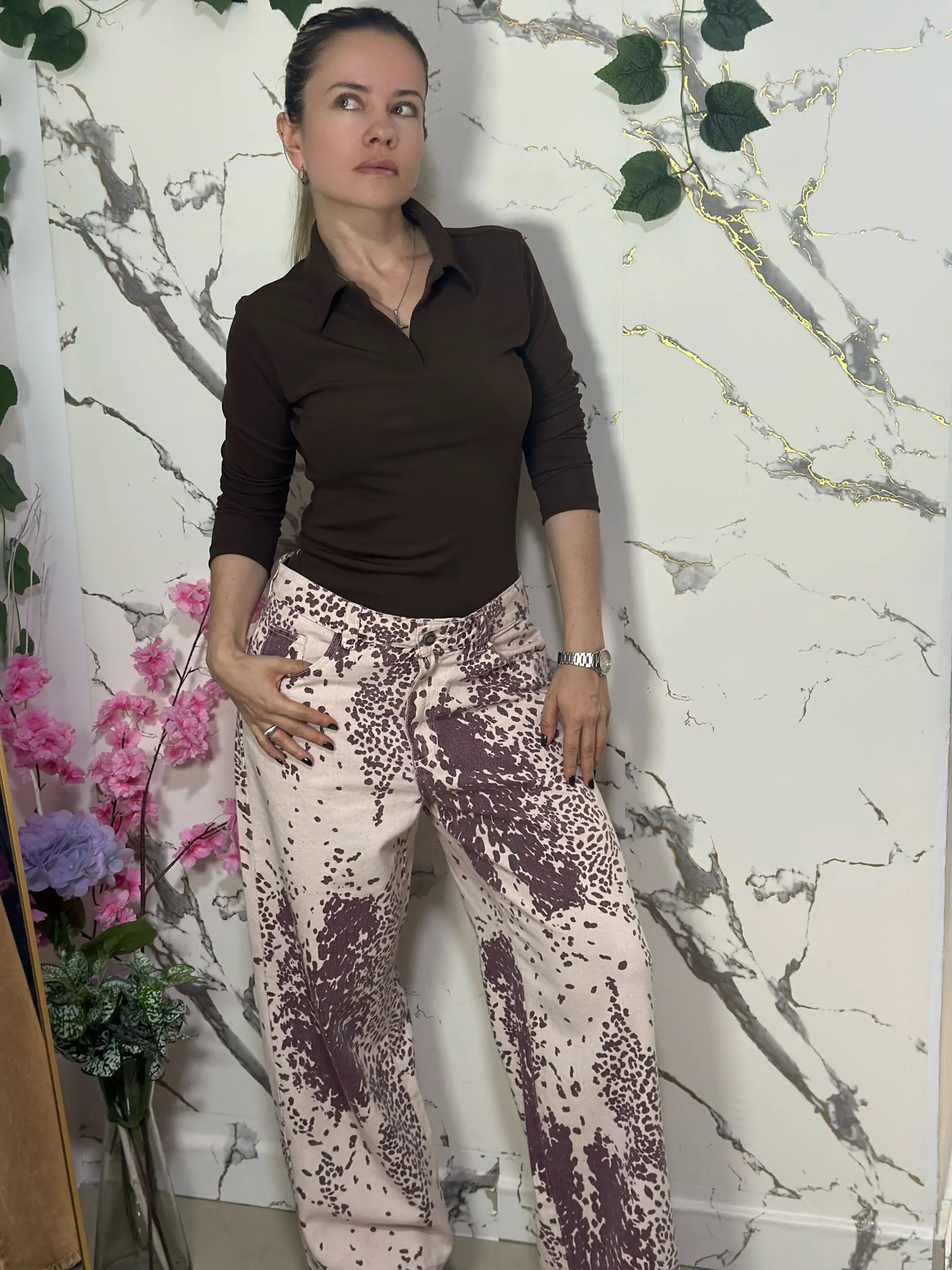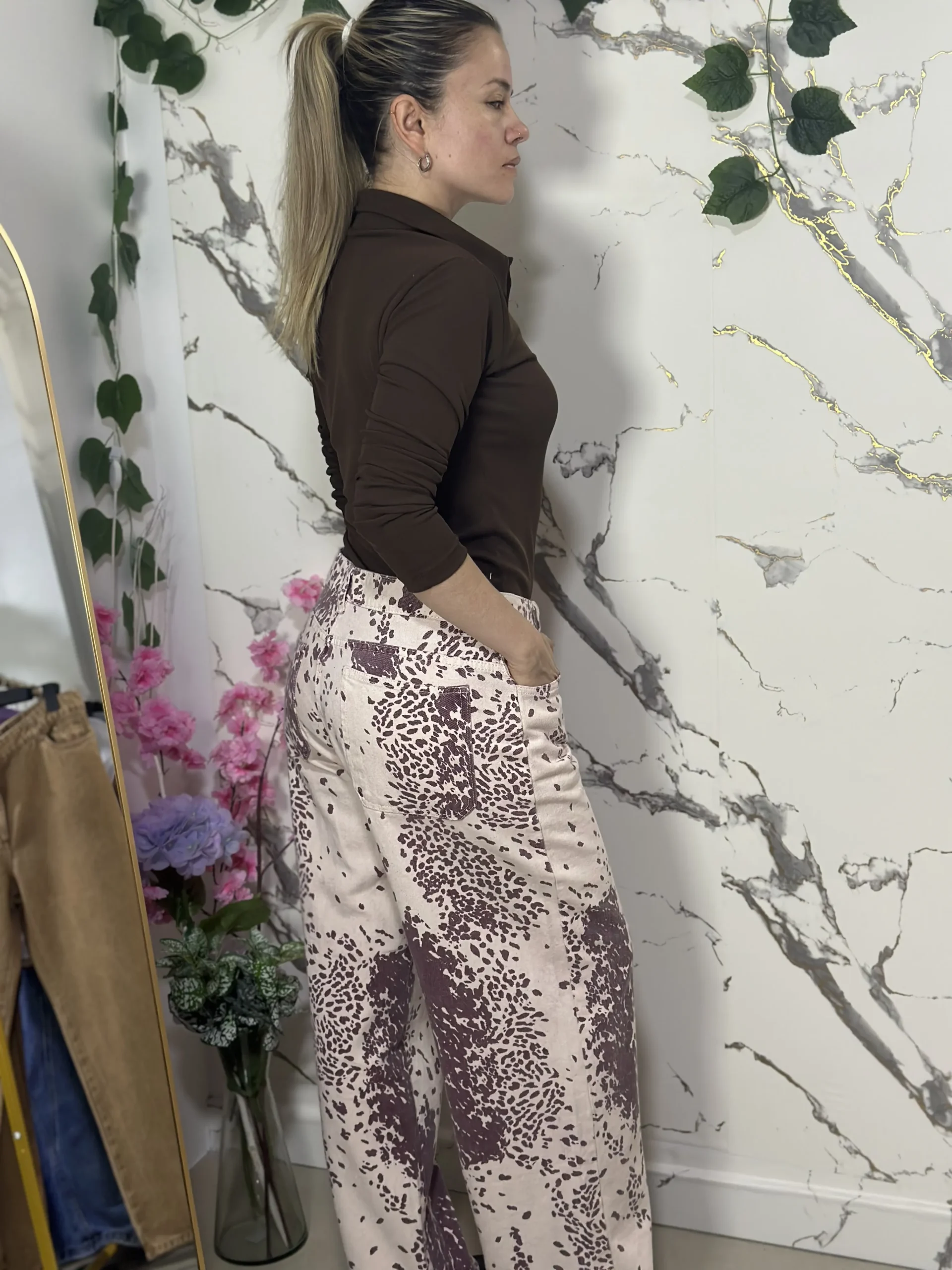 Fit wide leg con horma amplia, corte relajado y ajuste suelto.