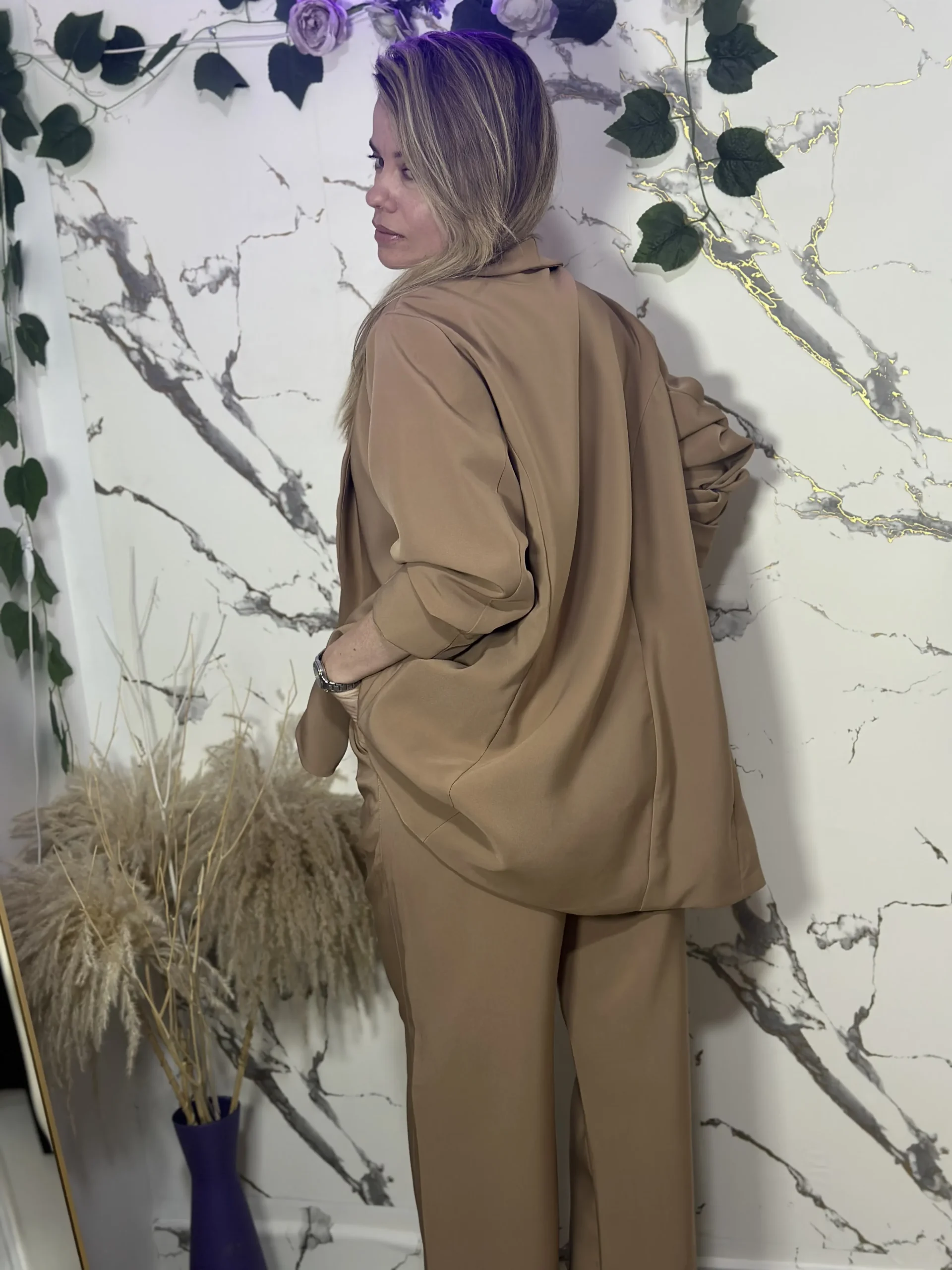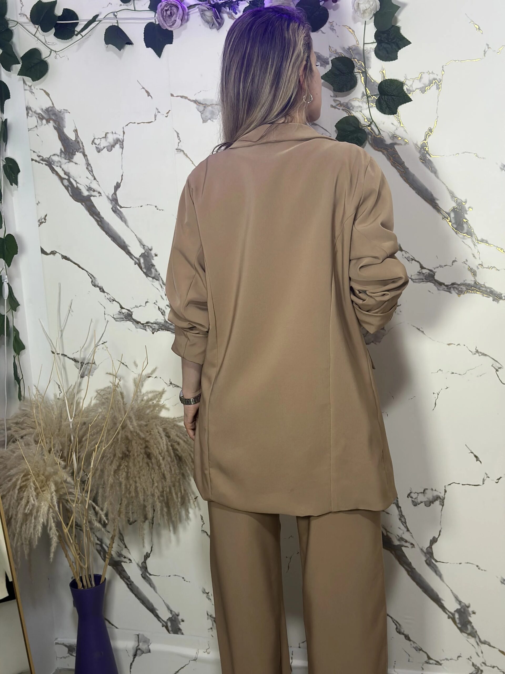 Conjunto con blazer oversize y pantalón amplio. Elegante, cómodo y versátil.