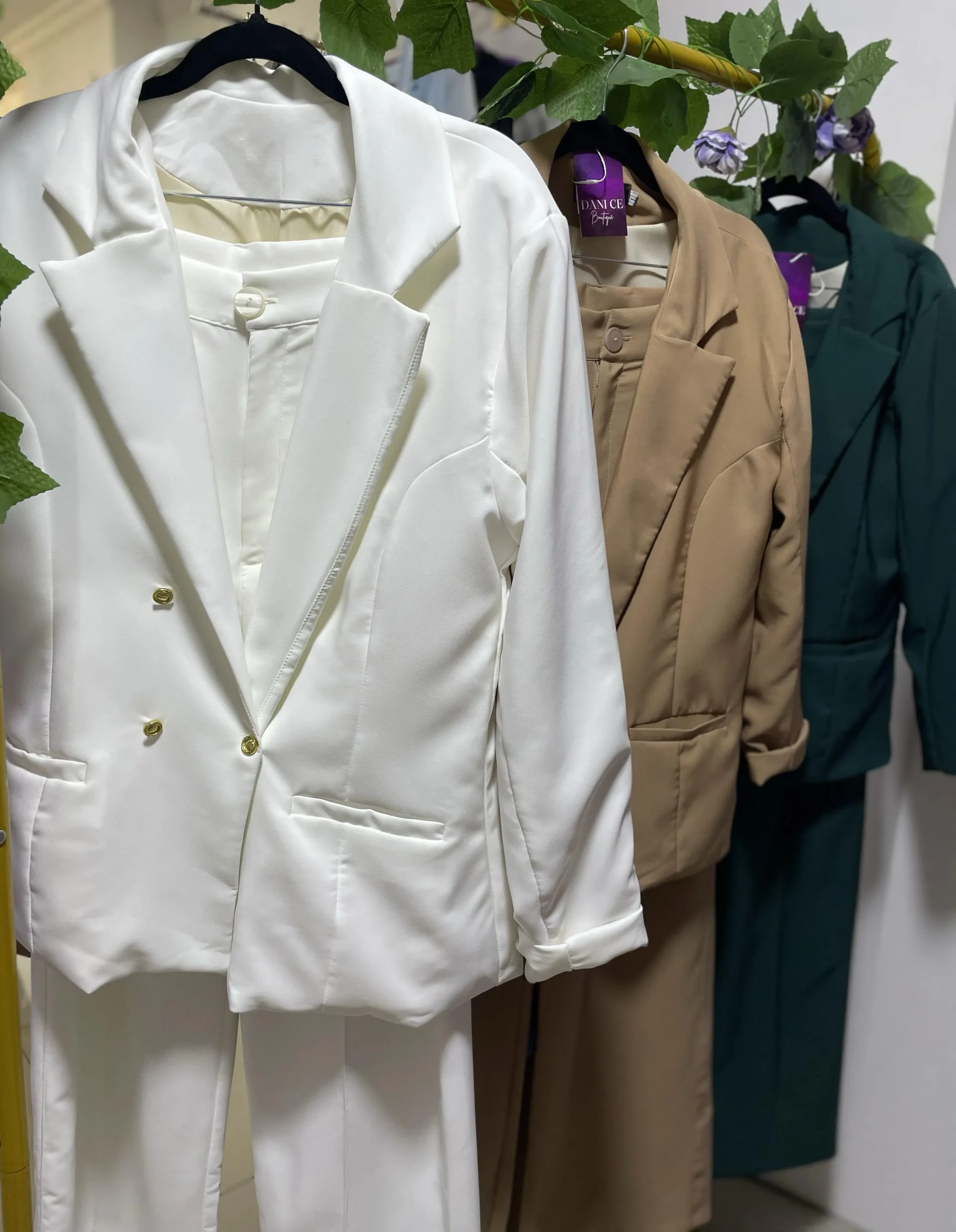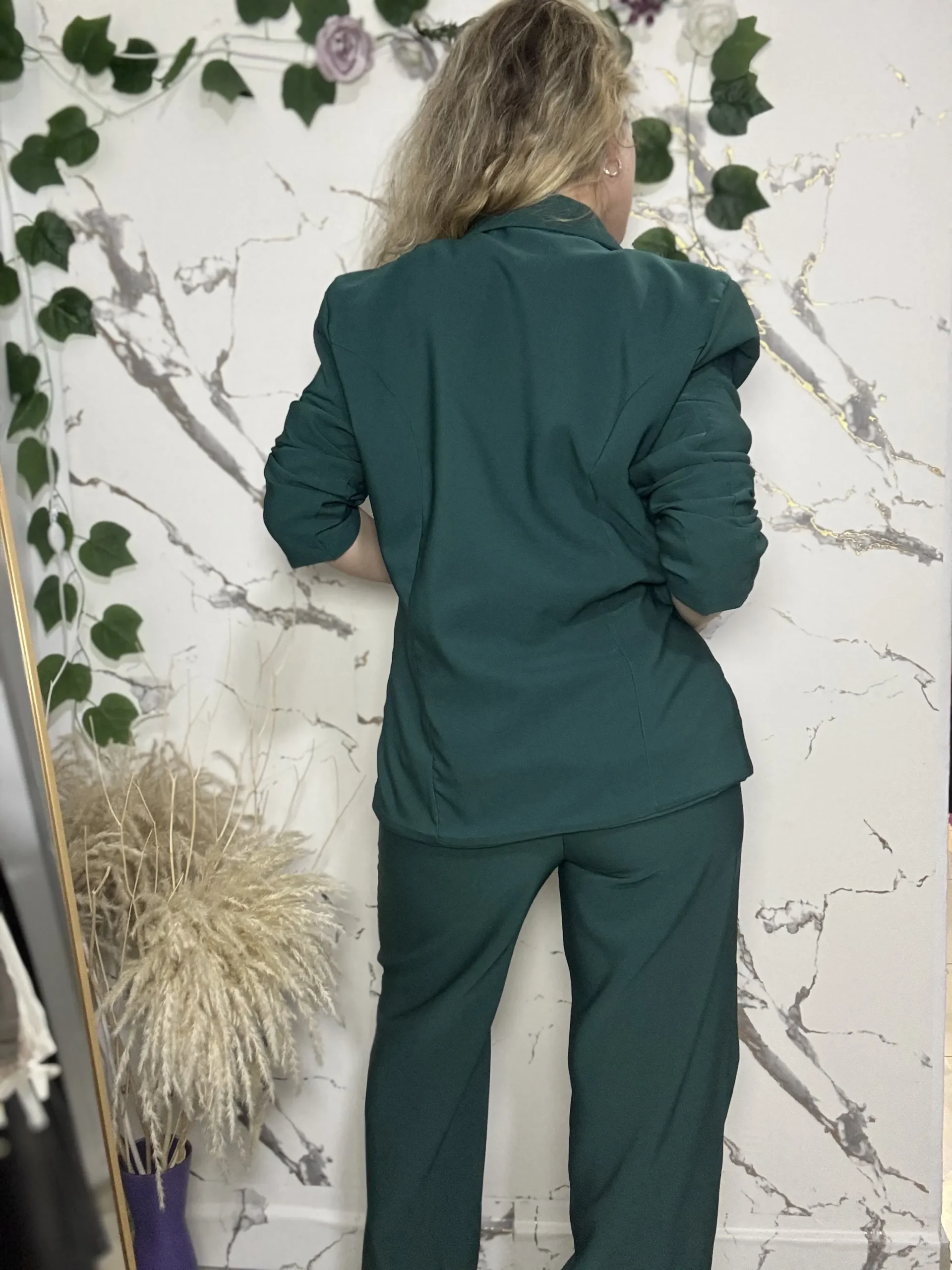 Set de 2 piezas con blazer forradoBlazer forrado con bolsillo funcional, confeccionado en material tipo Noches de Viena. Set versátil y elegante, ideal para looks formales o casuales.Disponible en tonos verde, camel y Blanco Marfil.