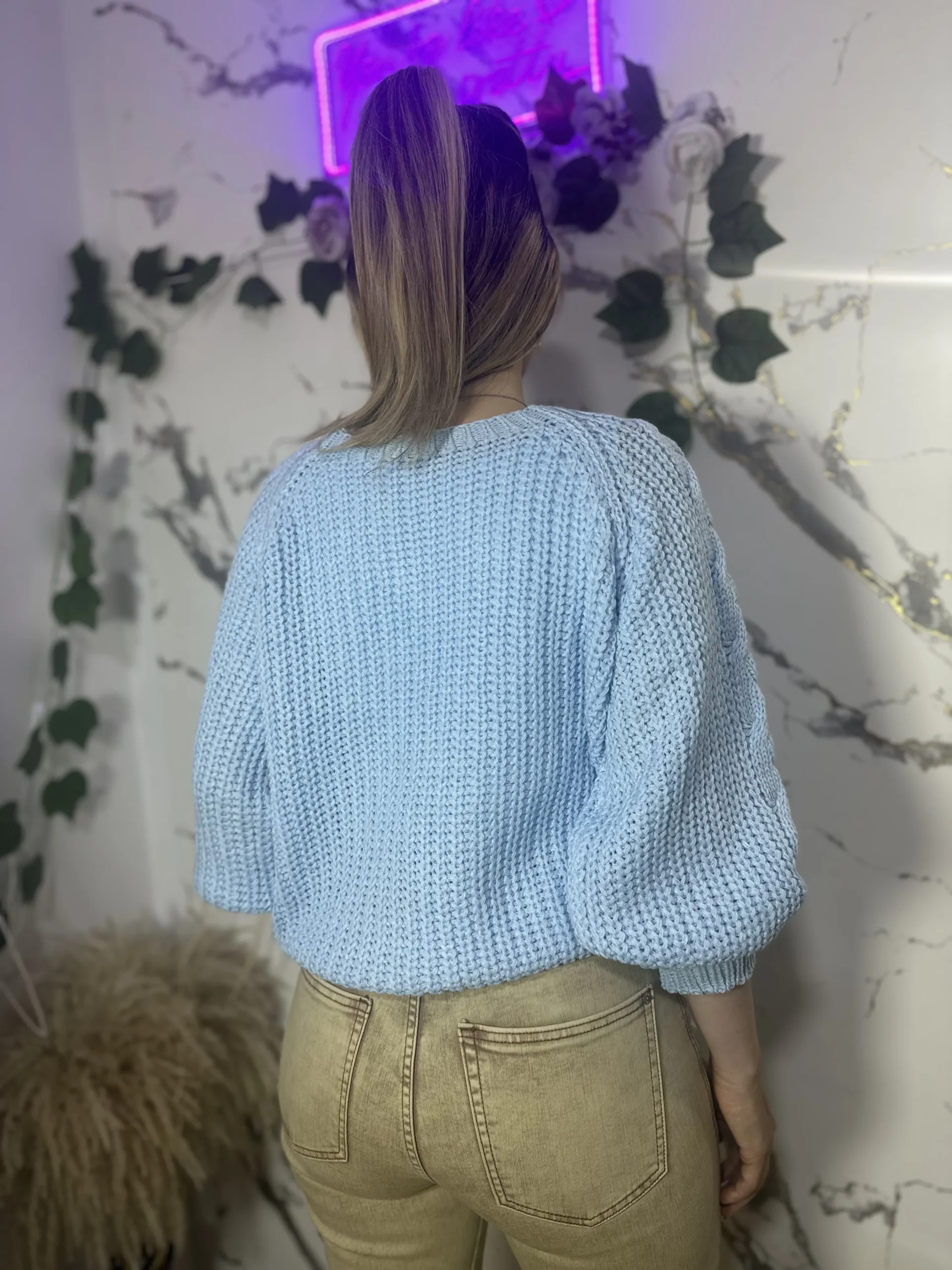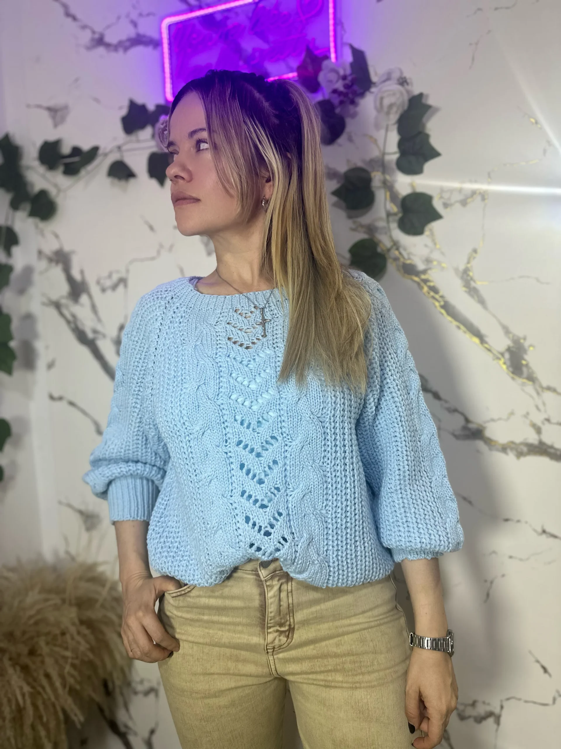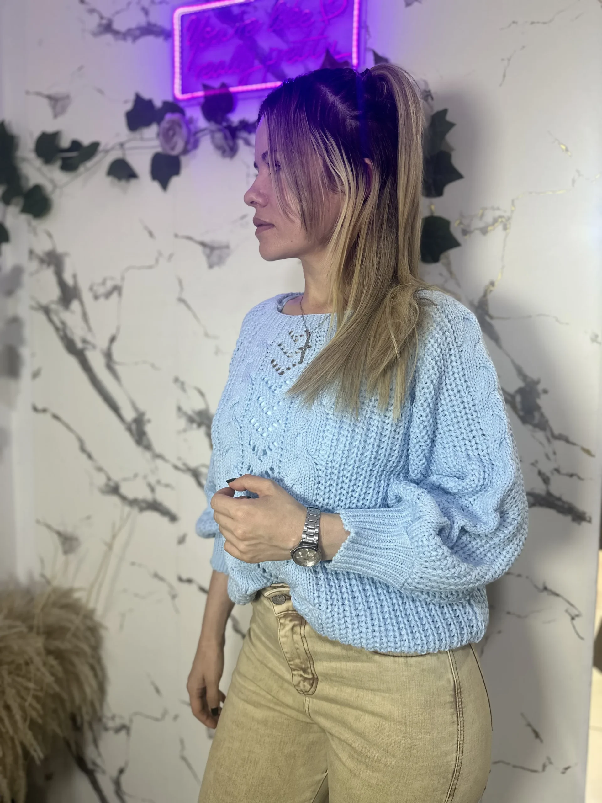 Tejido de diseño con textura relieve y mangas abullonadas. Una pieza versártil de corte relajado y estilo sofisticada.